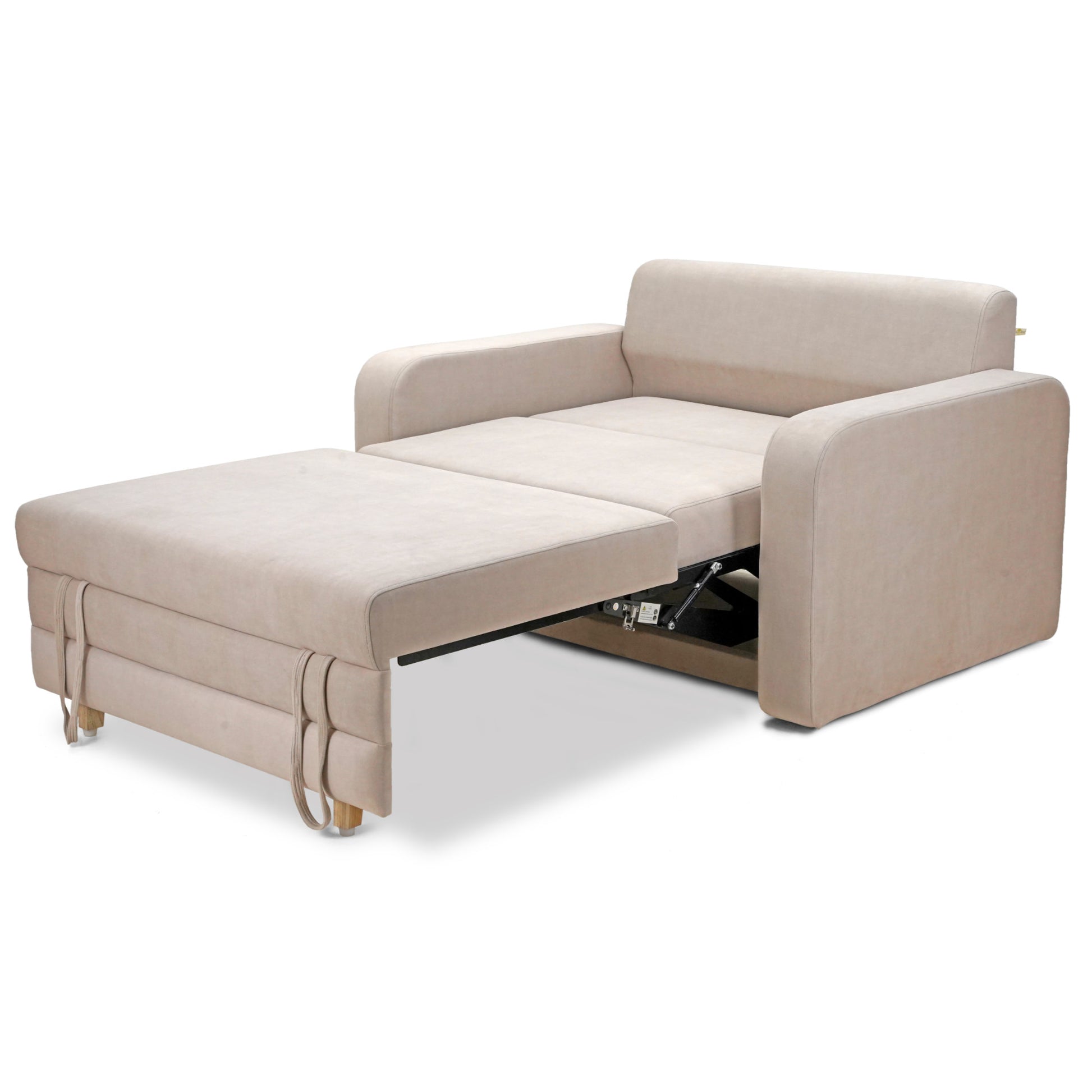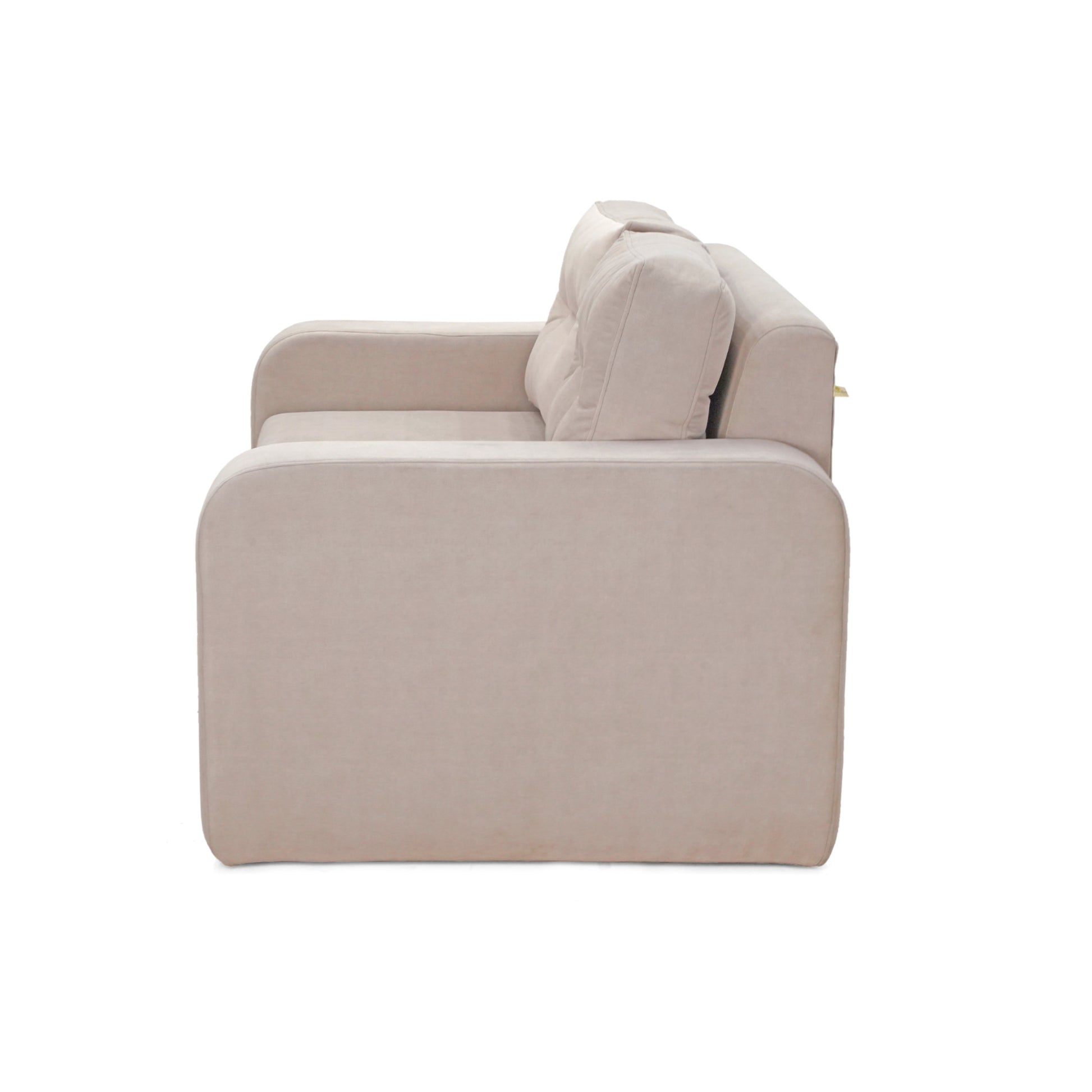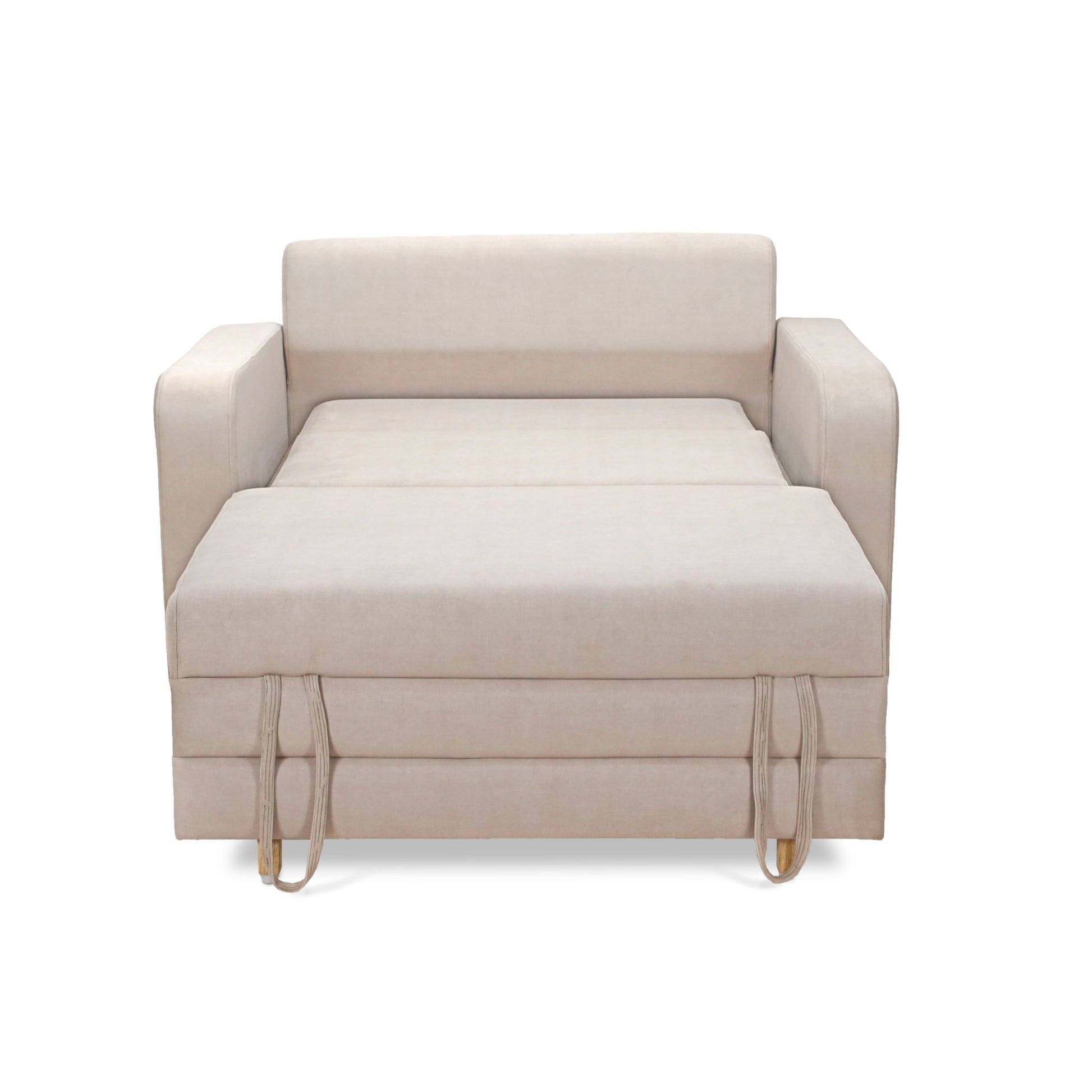 Maximize your living space with this versatile Beige Convertible Sofa Bed. Designed for modern comfort, this sleek sofa effortlessly transforms into a flat bed, perfect for guests or small apartments. Upholstered in soft, neutral beige fabric, it features plush cushioning, rounded arms, and sturdy wooden legs for lasting durability. The fold-out mechanism is smooth and easy to use, ensuring a seamless transition between sitting and sleeping modes. Ideal for lounging or overnight stays, this piece combines functionality with contemporary style.